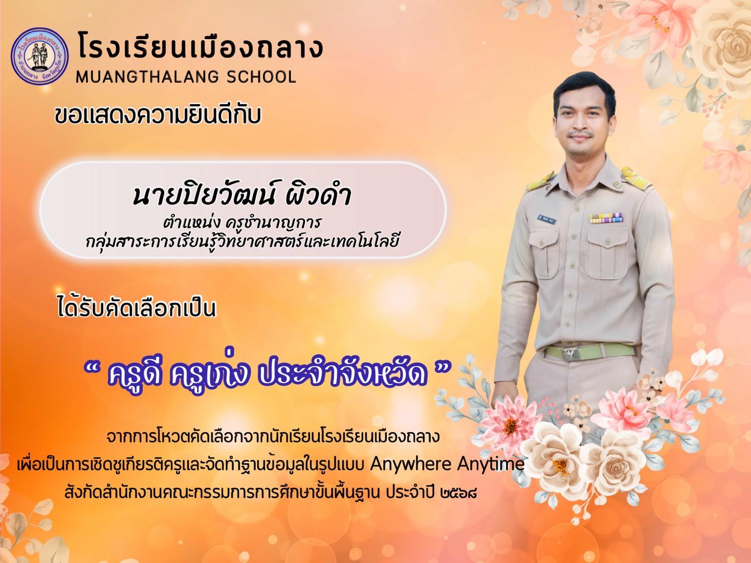 ได้รับคัดเลือกเป็น “ครูดี ครูเก่ง ประจำจังหวัด”